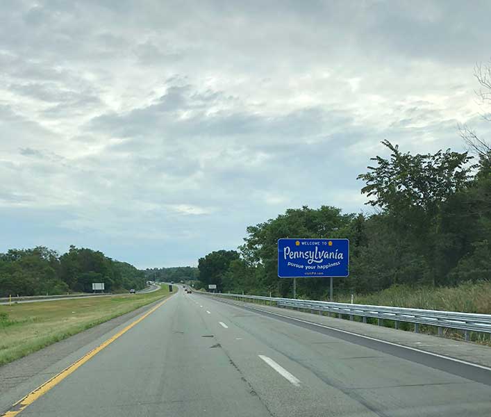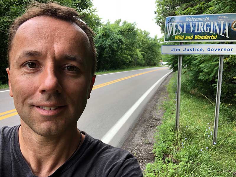 Wie ook maar een klein beetje door de VS reist, allochtoon of autochtoon, wordt erdoor aangestoken. Amerikaanse vrienden weten ’t uit hun hoofd, er zijn natuurlijk apps die je helpen of je houdt zoals ik een lijstje bij: hoeveel van de 50 staten heb je bezocht? In een land dat zo belachelijk groot is (Boston-Los Angeles is twee keer zo ver als Amsterdam-Moskou), is ’t voor sommigen een sport om zoveel mogelijk staten te bezoeken. Zelf vind ik het lijstje bijhouden leuker dan de 50 halen (want wat moet je nog, als je ze allemaal hebt bezocht?), maar toch verheugde ik me op mijn eerste bezoek aan West-Virginia, nummer 38 op mijn lijst. Op de website scenicbyways.info had ik gezien dat de Washington Heritage Trail daar erg mooi moet zijn. Dus koos ik na het laatste stukje US-40 door Ohio en het zuidwestelijke hoekje van Pennsylvania voor State Route 9 door West-Virginia. Eerst kom je dan nog door een merkwaardig hoekje van Maryland (wie heeft die grenzen bedacht?), waar ik aan de counter van een café in een heuvelachtige straat in Frostburg een sandwich met gegrilde groenten bestelde, dat overladen werd met een flinke berg chips. Lekker!