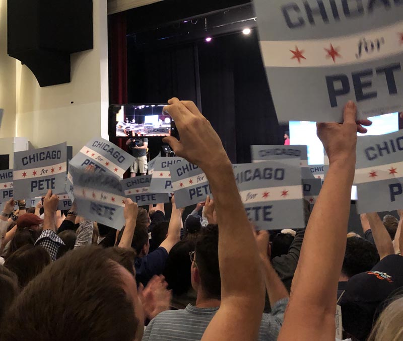 Als een ware popster komt Buttigieg het podium op voor een toespraak van een minuut of 20 die na elke twee zinnen wordt onderbroken door een luid applaus, en daarna voor het beantwoorden van vragen uit de zaal. De Democraat blijkt voorstander van strengere wapenwetten, uitbreiding van Obamacare, drastische maatregelen tegen klimaatverandering en wil het onderwijs voor zwarten verbeteren.
