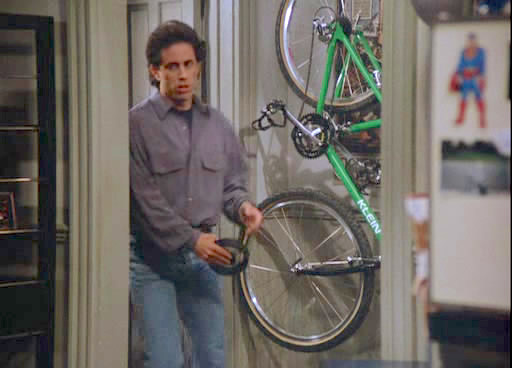 Amerikanen willen ook gelijk weten waar we onze fietsen gekocht hebben; ik geloof dat ze echt onder de indruk van de Gazelles zijn. Eentje wilde m'n fiets laatst optillen om te zien hoe zwaar die is en toen werd het enthousiasme opeens een stuk minder. Want veel fietsers wonen in één van de vele twee- of driehoge appartementencomplexen zonder lift in de wijken buiten het centrum, waarbij ze hun fiets net als Seinfeld in de woonkamer hangen. Dat doen we met onze 20 kilo uit het Gelderse Dieren maar niet.