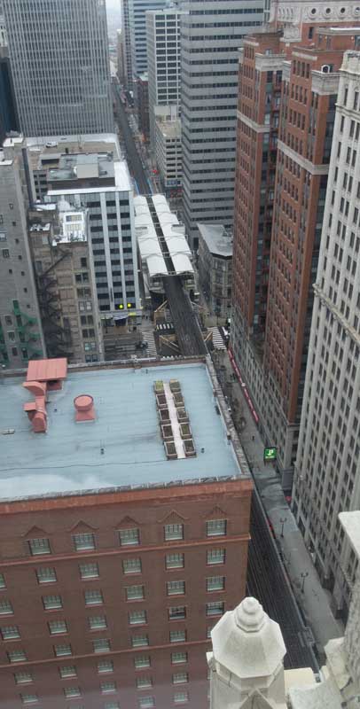 En het geldt niet alleen letterlijk, maar ook figuurlijk. Het weer is 'groter' (met orkanen in Florida, tornado’s in Oklahoma en sneeuwstormen in Chicago), de politiek is groter (met grotere idioten) maar ook het lawaai is 'groter'. Het gebeurt regelmatig dat we in een restaurant 'gezellig' anderhalf uur tegenover elkaar zitten zonder een woord te wisselen vanwege de kolossale muziek die uit de speakers komt. En als de brandweer voorbij komt doen we de vingers in de oren om niet nog een uur lang een fluittoon te horen. Maar de meeste herrie komt van de 'El', de elavated trains, die over een ijzeren constructie door de stad heen denderen.