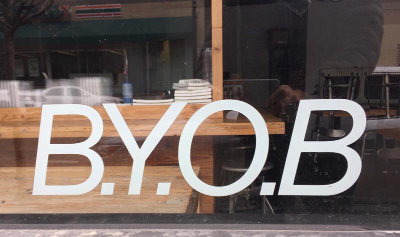 Ik herinner me nog dat we een jaar of wat geleden in het huis van m'n oom en tante in Pennsylvania mochten logeren en van hen een paar restauranttips kregen. 'Vergeet vooral geen fles wijn mee te nemen', zei m’n tante. Dat vonden we toen zo genant, dat we 't liever bij water hielden. Inmiddels hebben we ons leven gebeterd en zijn we nu helemaal aan het fenomeen BYOB gewend. Als je eraan denkt tenminste.